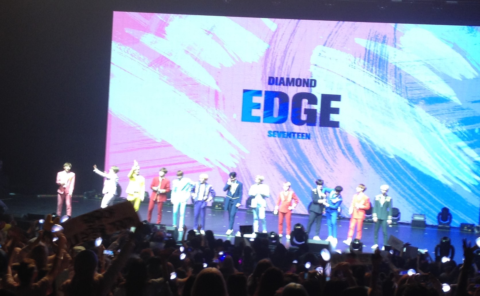 As the evening wound to a close there were conflicting emotions. Everyone wanted the night to go on forever, but no matter how happy the young men of Seventeen looked, they were obviously tired. They came out for one last encore wearing comfortable clothes with cameras in hand, they took photos of the audience and waved and made eye contact with as many fans as possible before posing for the obligatory photo of them with the audience in the background, before finally heading off stage.