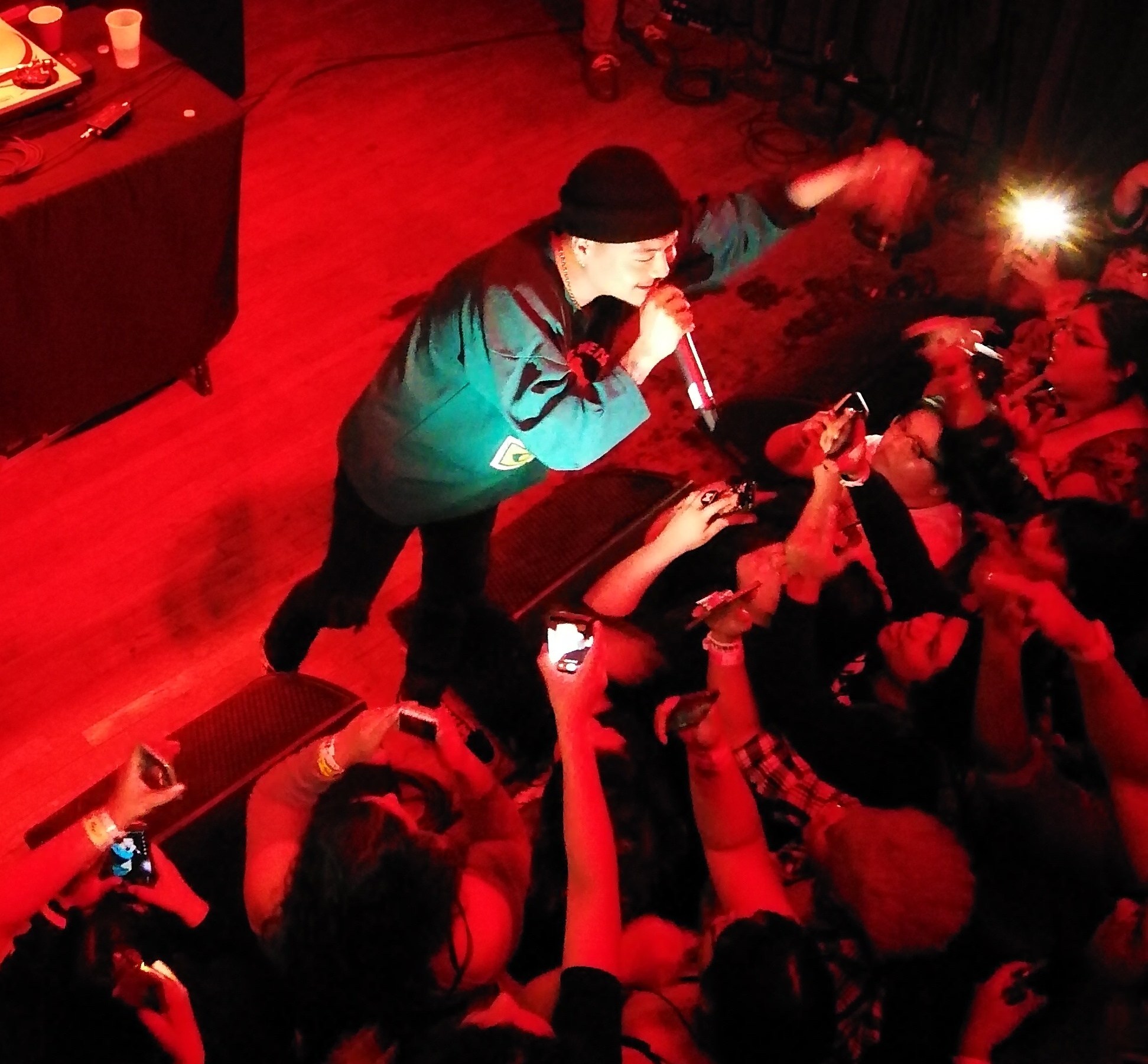 The venue staff got us all lined up and we proceeded to take our turns meeting Dumbfoundead. He was gracious and allowed hugs and multiple photos, taken with each person’s personal camera/phone by a very helpful staff member. We also got an individually signed poster, tee shirt, goodie bag etc. There was no rushing or pushing and all the fans seemed very happy with the experience. Dumbfoundead even found his patch!