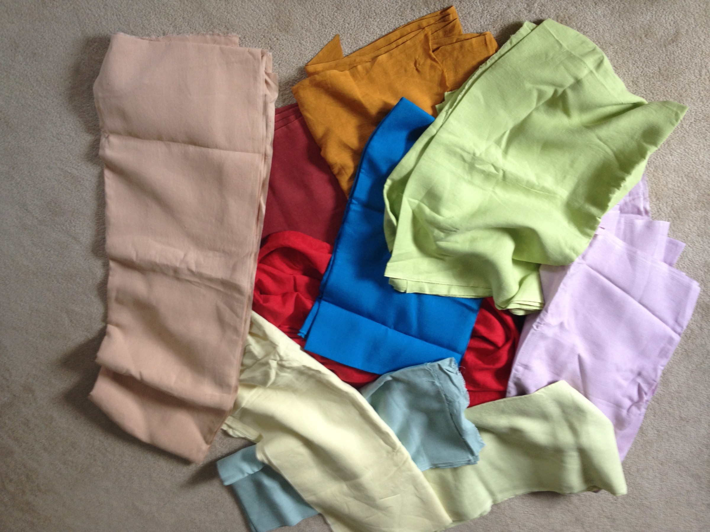 For myself I’m thinking of perhaps making a sokchima (petticoat), a chima, (skirt) and perhaps two jeogori, starting with the historically older one with the longer jacket. Now that I’ve decided on that I need to think about materials. Hanbok was traditional made from sambe (hemp), mosi (ramie), cotton, or silk, depending on class and the season. People often had summer and winter hanboks made from different fabric. Living in South Texas I need to take extreme heat into consideration, so I think I’ll use linen, an easily accessible material similar to hemp, that is relatively cheap and helps keep the wearer cool. If I could afford real Korean mosi (ramie) that would have been my first choice, but most of what is sold as ramie in the US isn’t really proper mosi. Just as a lot of fabric sold as linen is actually a linen blend. Fortunately I was able to buy some really nice linen a few years ago. The photo shows my linen stash. Not sure which colors to choose just yet though.